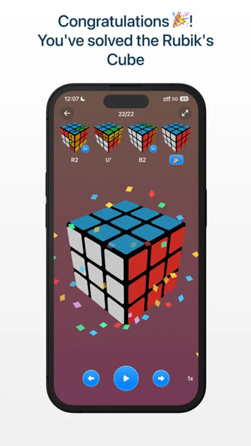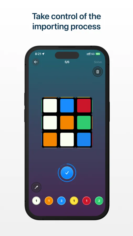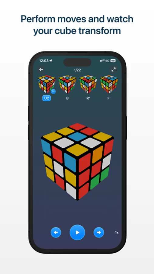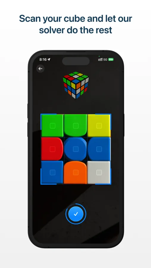 The app's intuitive visualization of your Rubik's Cube on your device's screen provides the most efficient way to solve your cube. With just two easy steps, you can scan your cube and receive visual instructions that will help you solve it in no time.