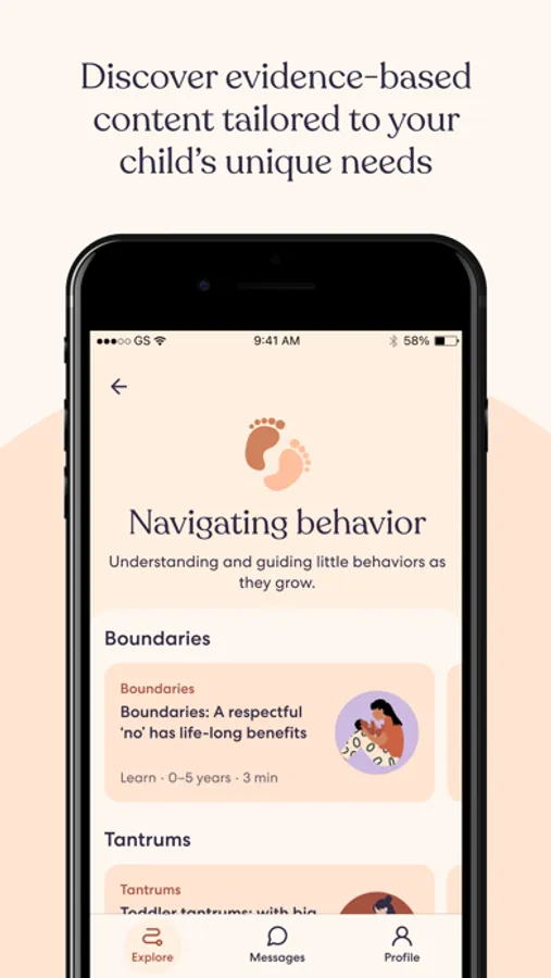 - Explore over 60 topics including sleep, tantrums, gender roles, anxiety, labelling, healthy screen time and more.