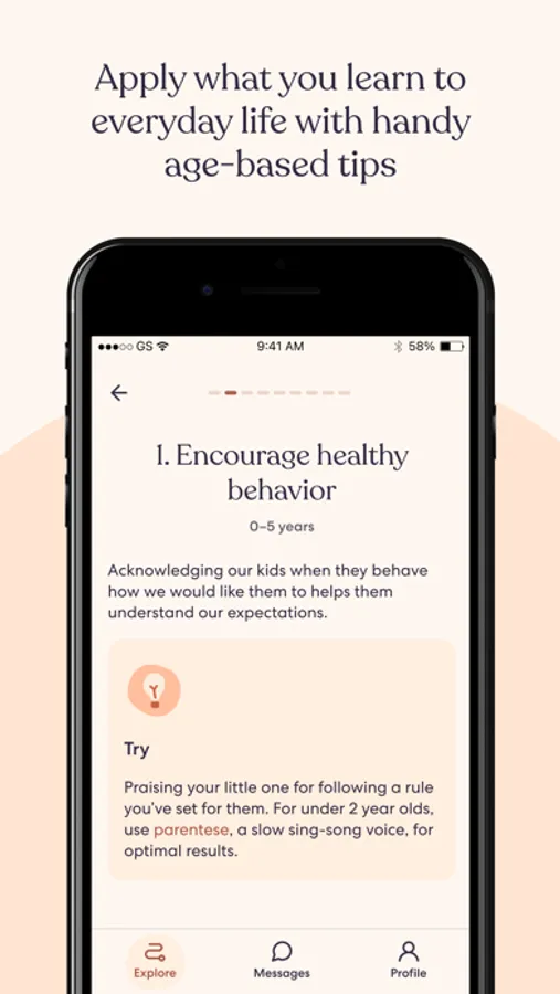 - Nurture your own wellbeing with evidence-based guidance and reflection exercises that support parental mental health.