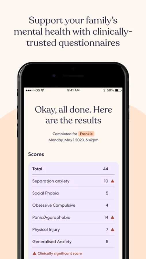 - Clinically endorsed questionnaires help screen for psychological concerns and identify when further support may be beneficial
