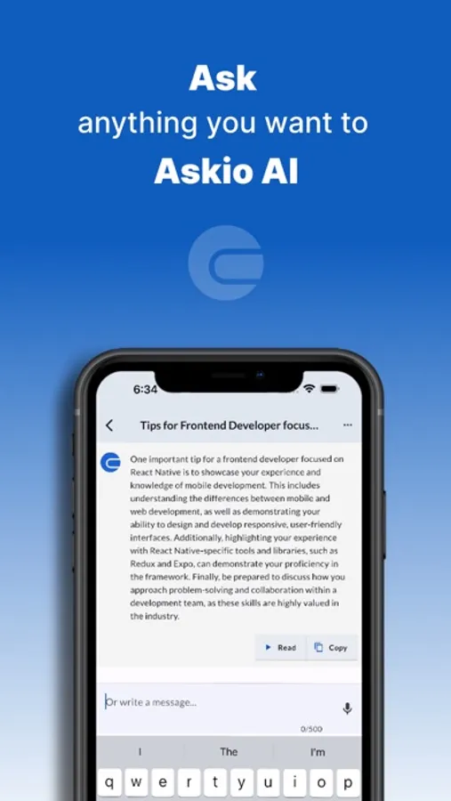 Whether you're looking for quick answers to your questions or need help with a specific task, Askio is here for you. Download our app today and see for yourself why so many people are turning to Askio for their AI chat assistant needs.