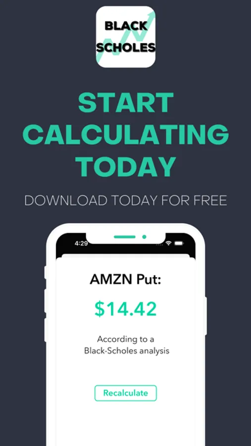 Analyze your next option with this Black-Scholes calculator. This app takes the award-winning formula and allows you to analyze a call or put.