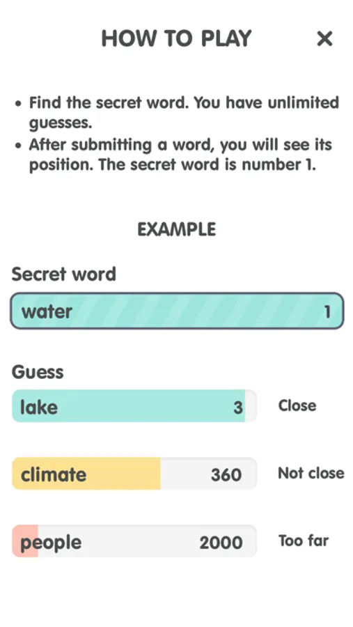 - The words were sorted by an artificial intelligence algorithm according to how similar they were to the secret word.