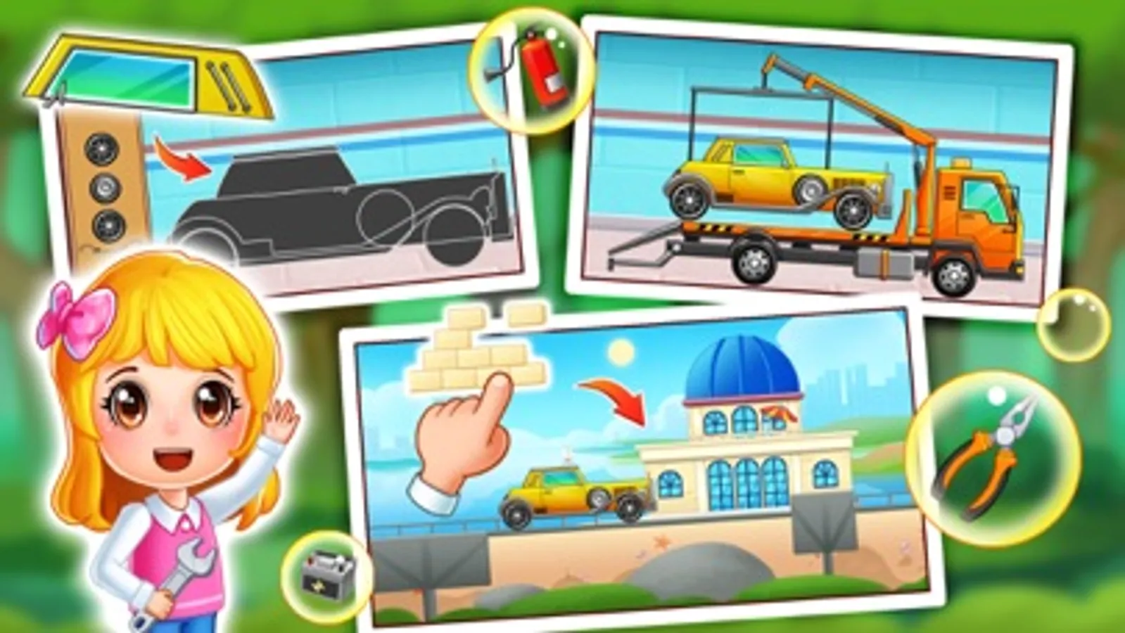 You can drive your car to help you build your dream house, just put the material in the corresponding location according to the prompts, and soon your house will be built.