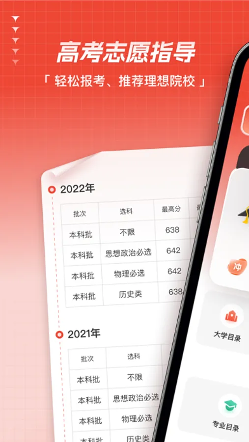 高考志愿APP为您解决选大学、挑专业、填志愿的高考难题,帮您实现完美升学,专业报志愿,轻松上大学!
