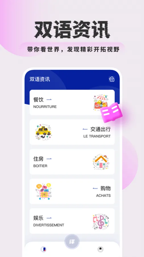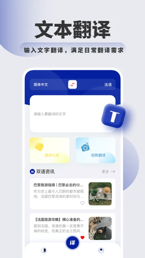 法语翻译助手,一款专注法语翻译学习利器,这里有标准地道的法语翻译发音,中法双语咨询旅游攻略等,是旅游出行法语学习随身常备APP!