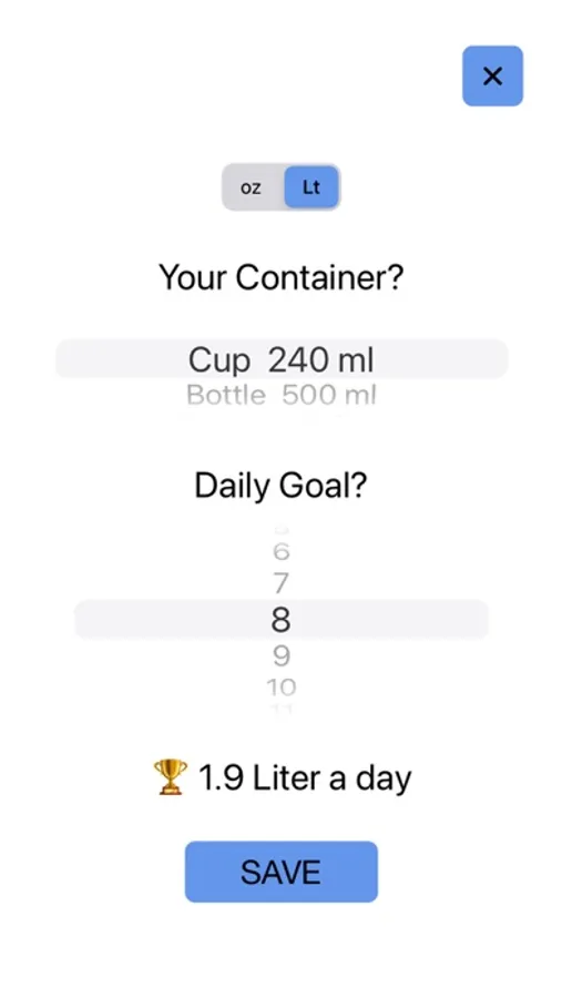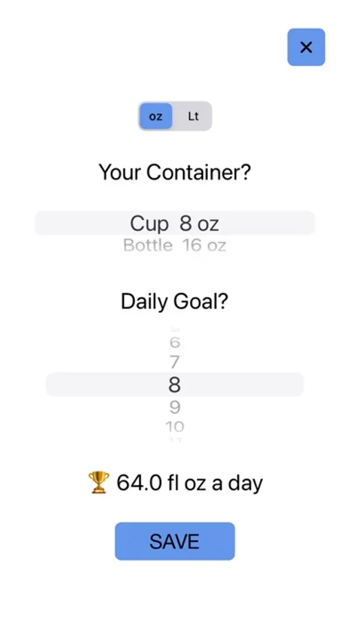 Get optional encouraging drinking reminders! You can also view your daily progress to see how you're doing and where you can improve.