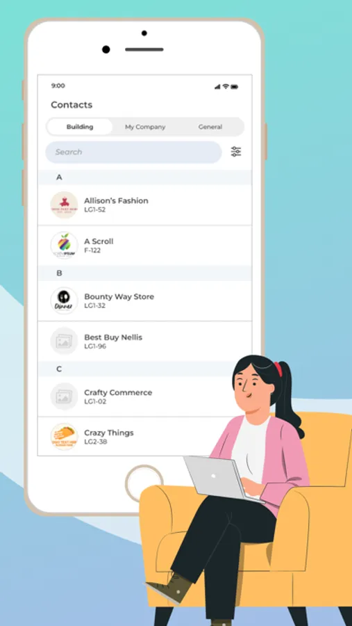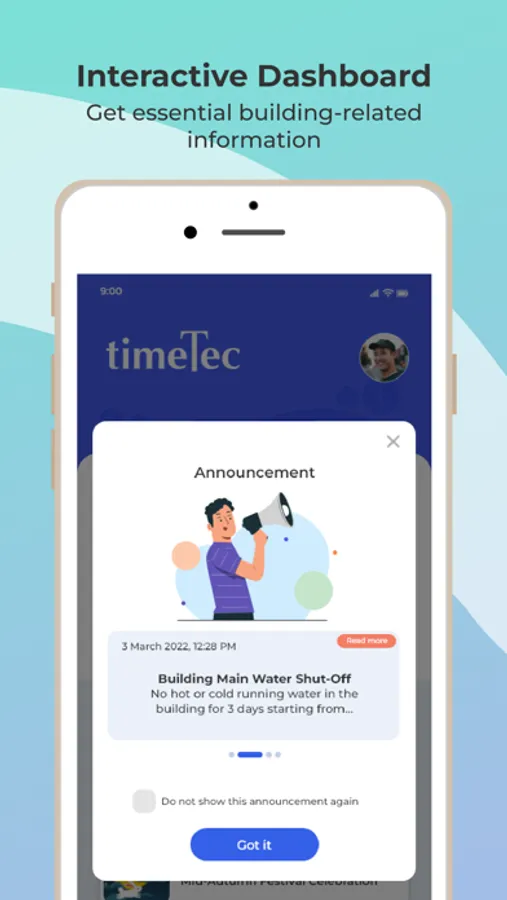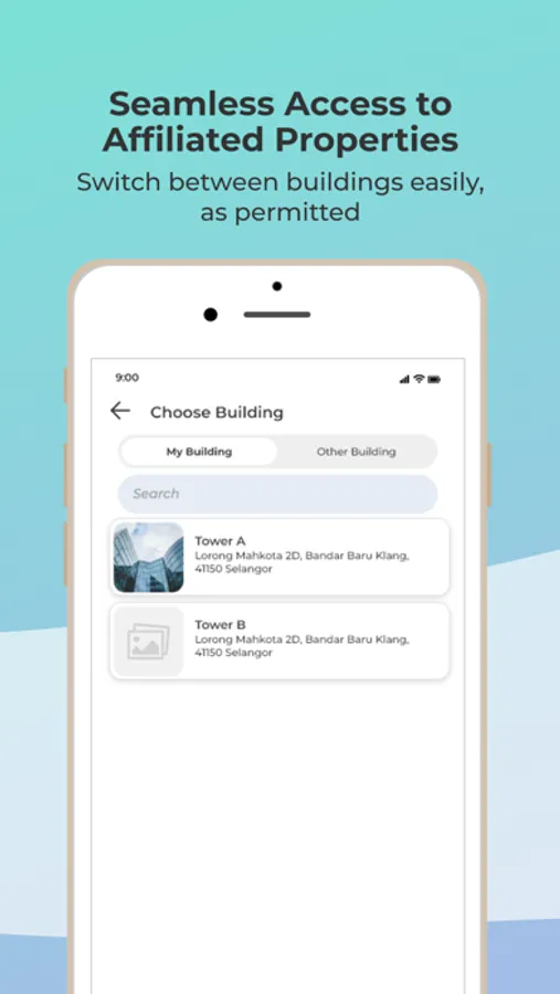 Access building-related information, such as announcements, documents, and contact details