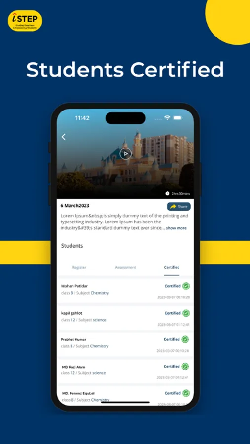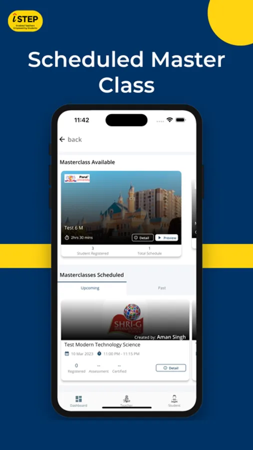 Global Universities conduct short 30-40 minutes masterclasses for class 11 & 12 students on iSTEP platform. A masterclass is a prerecorded session that can be scheduled on-demand by the school teachers for their students.