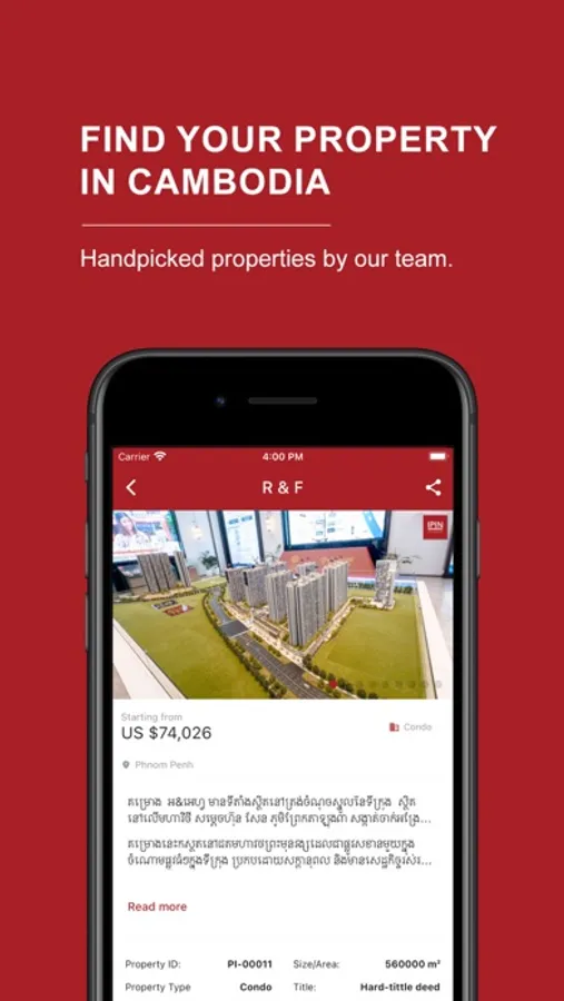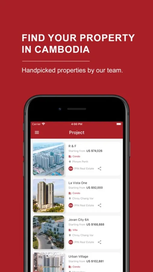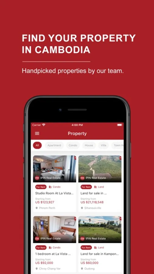 Buy or Rent a home at your fingertips with IPIN Real estate Mobile App. You will be able to search thousands of property across Cambodia with extensive info, including photos and videos that would allow you to consider at your own time.