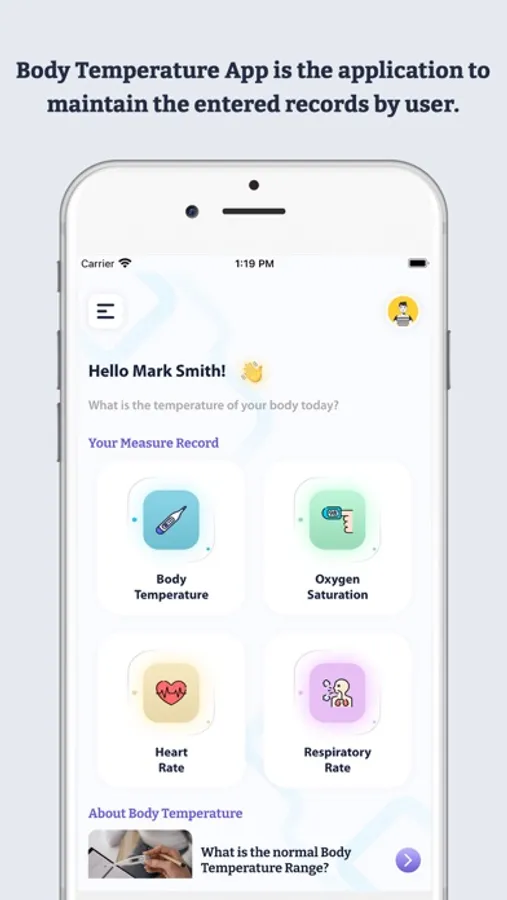 - Track your body Temperature and Heart Rate