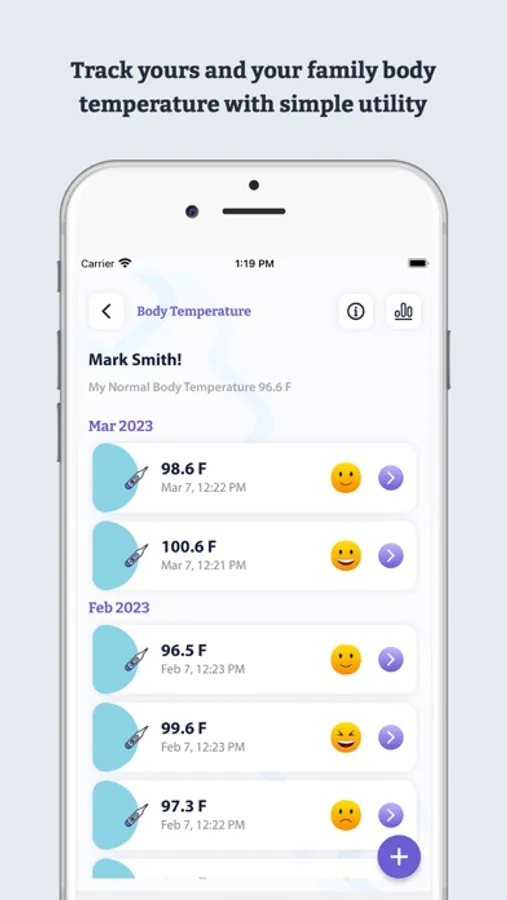 Track your and your family's body temperature with the simple utility Fever Diary - Body Temperature app.