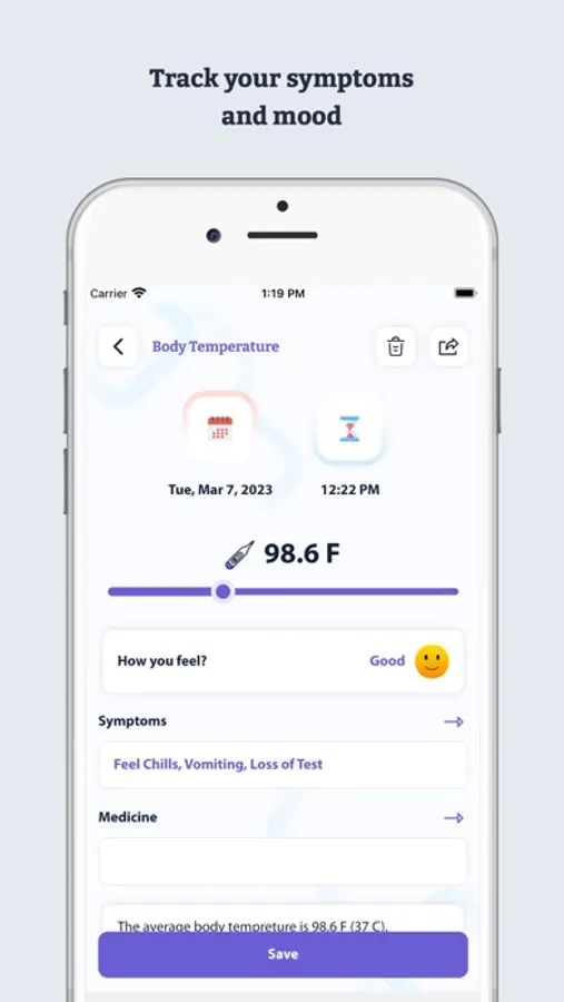 Fever Diary - Body Temperature App Features :