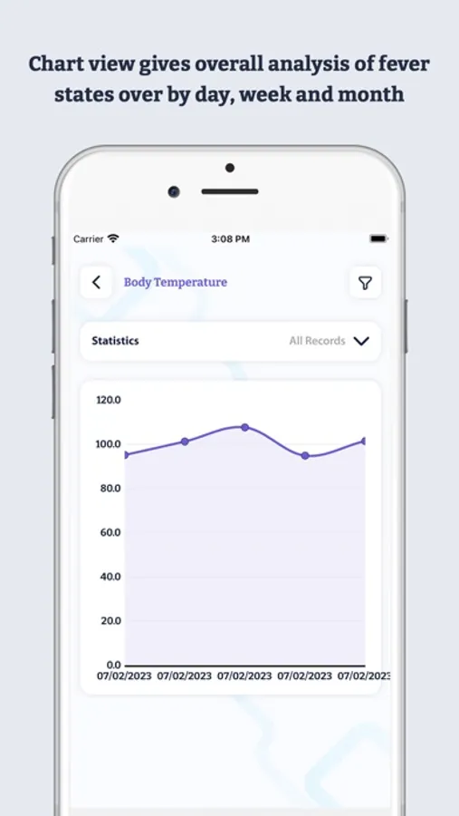 - Chart view gives an overall analysis of fever states over by day, week and month