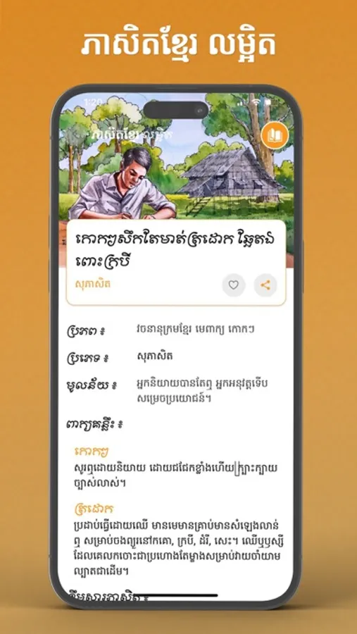 Khmer Proverbs always have a deep meaning, embedding an educational message that shows the Khmer civilization and society that has evolved over time. Our team would like to see young Cambodians remember and choose these good words of advice to use in daily life and other creative work to develop themselves as strong youth of the nation.
