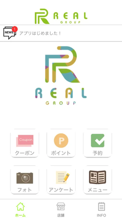 REAL GROUPの店舗情報はもちろんのこと、最新情報やクーポン、全店共通の電子プリペイド機能など、様々な便利機能が使えます。