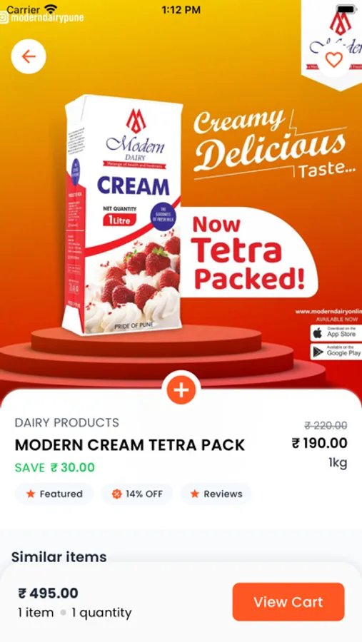 Download the Modern Dairy app and order online to get your daily essential items delivered to your doorstep.