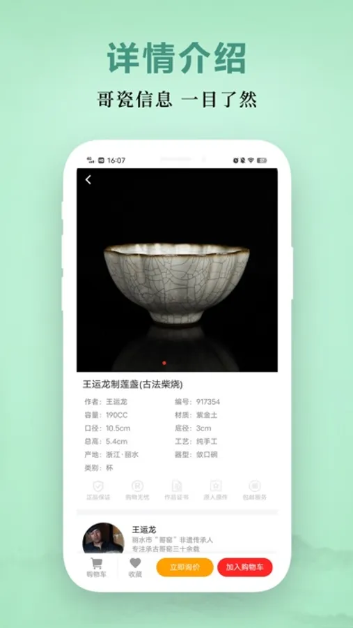 传承宋代哥窑哥瓷精湛工艺,遵循传统古法烧制技艺.