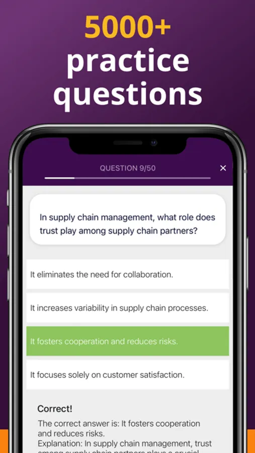 Over 3000 exam-relevant questions, 1000+ insightful flashcards, numerous practice exams, and detailed case studies make Ultraprep your ultimate tool for mastering the Certified Supply Chain Professional (CSCP) exam. Our app is engineered to encompass the breadth and depth of knowledge needed to excel in supply chain management.