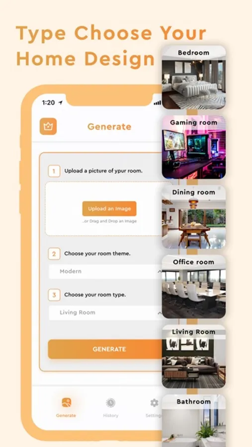 • Choose the type of room: Bedroom, Living Room, Gaming Room, Kitchen, etc.