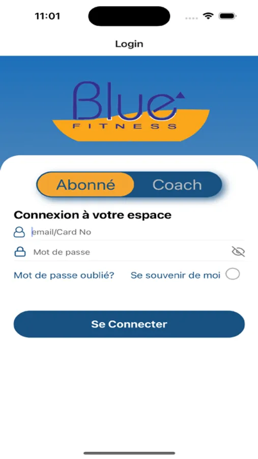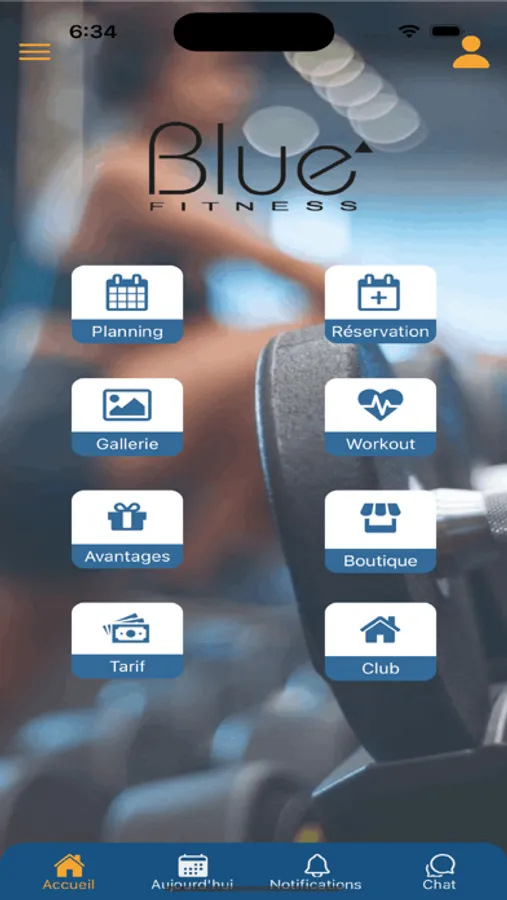 Application IOS pour les abonnés de la salle de sport Blue Fitness.
