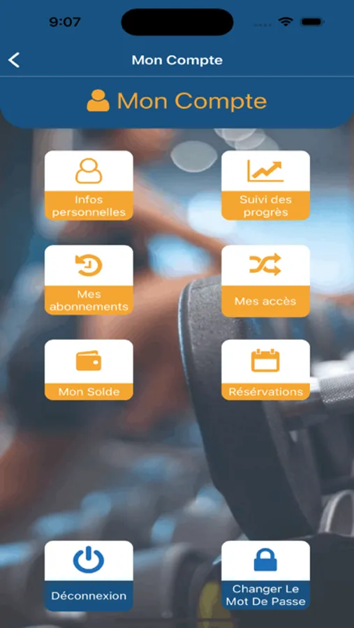 l'application permet aux abonnés du club d'avoir un compte privé dans l'application avec un accès par login et mot de passe.