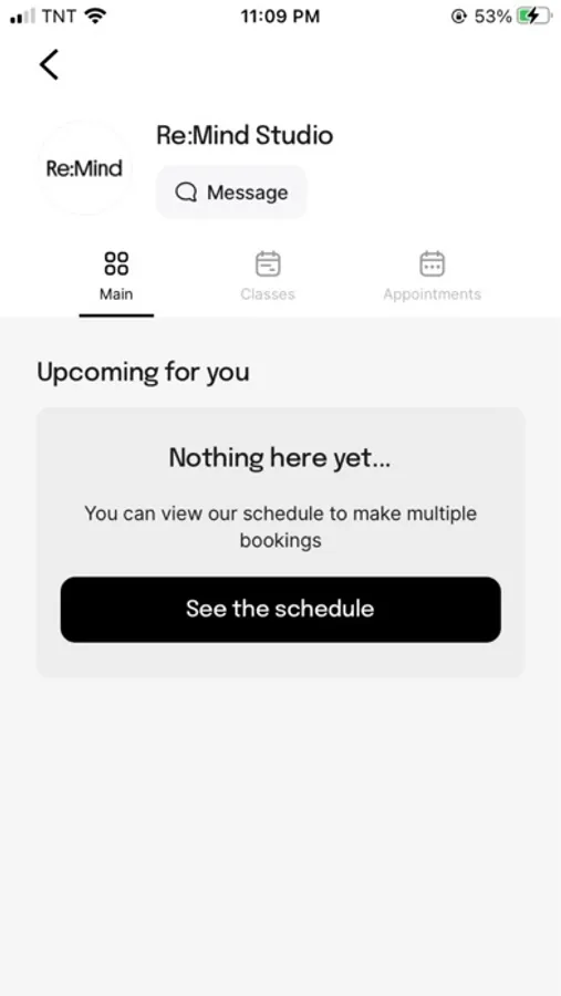 The Re:Mind Studio app makes it very easy for you to manage your Re:Mind Studio account, book into our classes and events, watch our on-demand content, and keep in touch with us. You can easily message us if you have a question or want to share something with them. You can also follow our public feed to see any announcements we make, promos we run, or content we share.