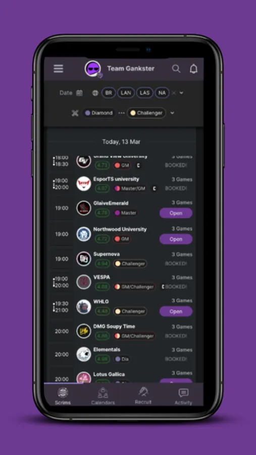 + Set up matches and scrims that fit your schedule using our dedicated booking system.