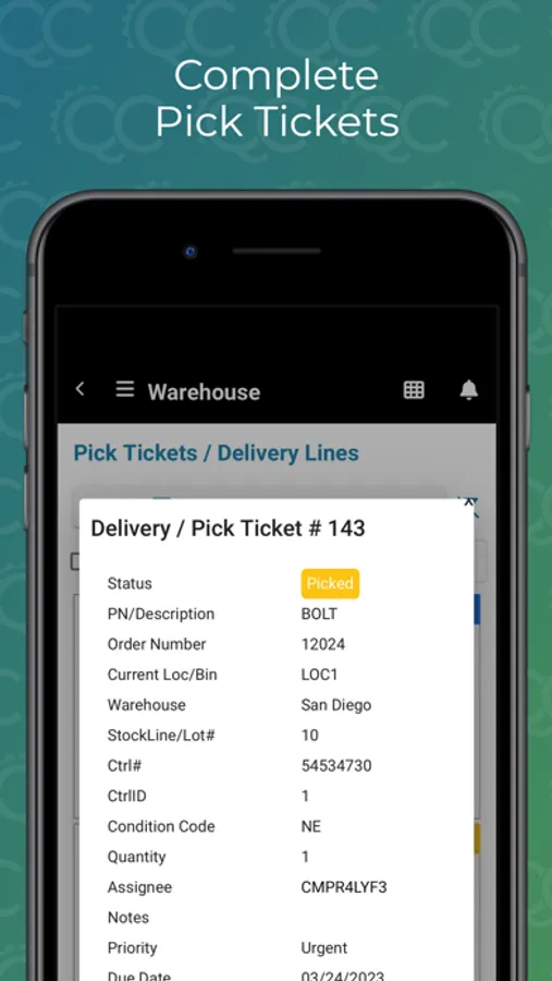 • Expedite fulfillment: View pending part picks/deliveries, scan to allocate, and deliver to appropriate personnel.