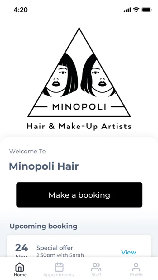 The Minopoli Hair app makes booking your appointments and managing your loyalty points even easier. You're just a few taps away from feeling good and looking great!