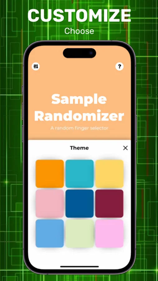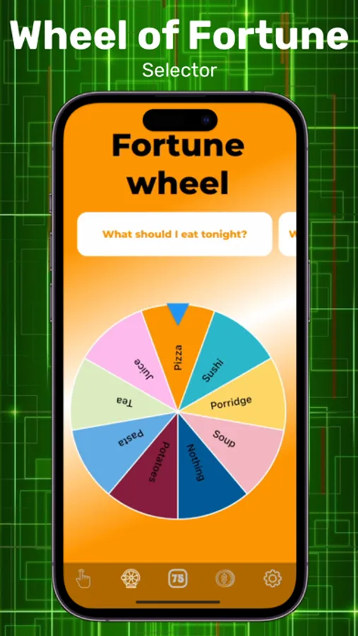 Choose what to cook for dinner by spinning the wheel or tossing a coin to determine the winner in a dispute. Sample Randomizer is a fun and interactive way to spend time with friends and determine who will pay the restaurant bill.