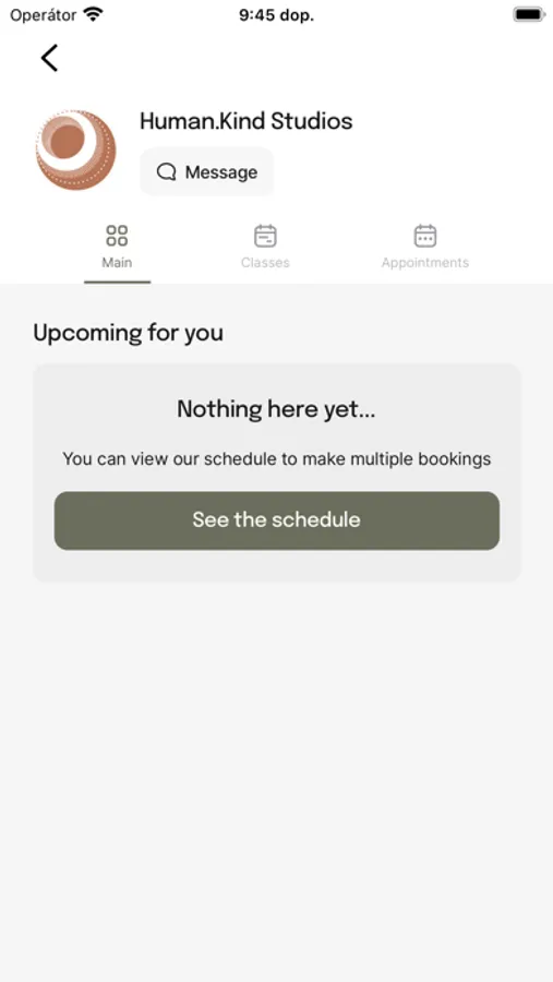 The Human.Kind Studios app makes it very easy for you to manage your Human.Kind Studios account, book into our classes and events, watch our on-demand content, and keep in touch with us. You can easily message us if you have a question or want to share something with them. You can also follow our public feed to see any announcements we make, promos we run, or content we share.