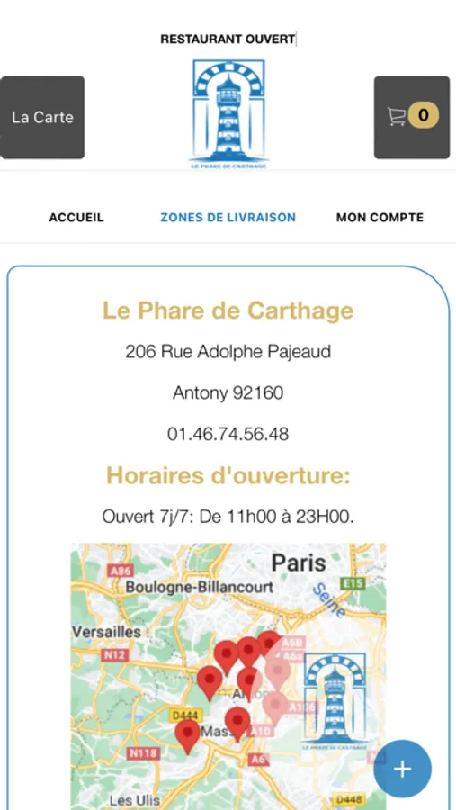 L'application Le Phare de Carthage vous permet de commander en ligne ou par téléphone via votre application. Vous pouvez consulter notre carte et choisir vos produits.
