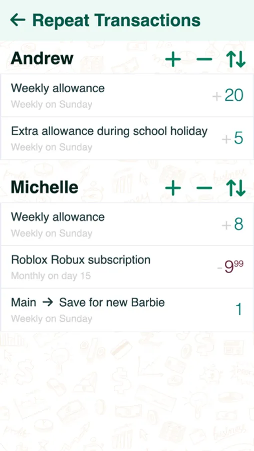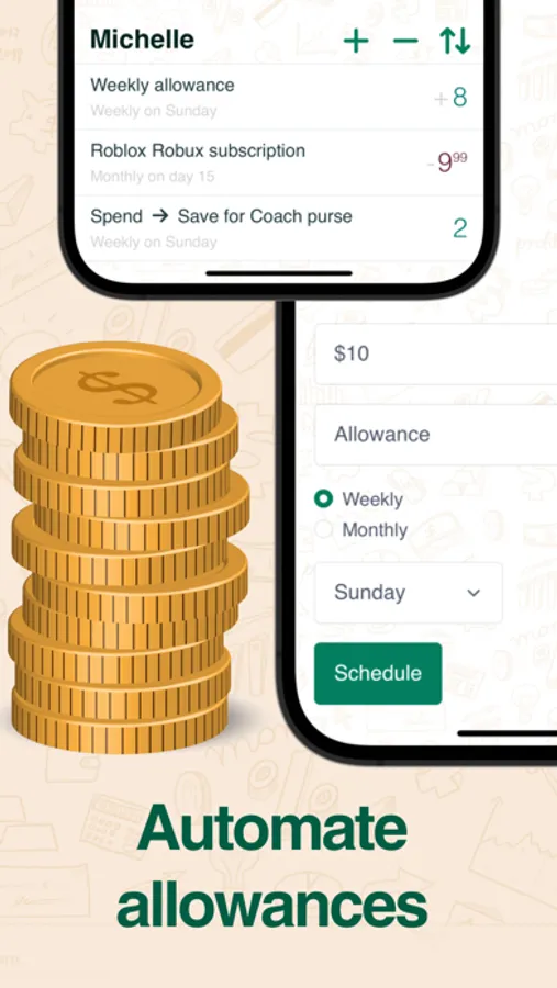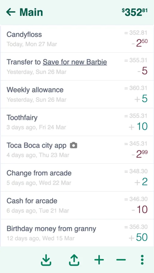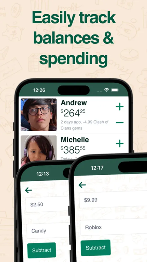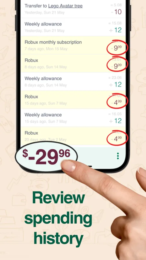 When your child wants to spend, you pay or give them cash, and deduct it in the app