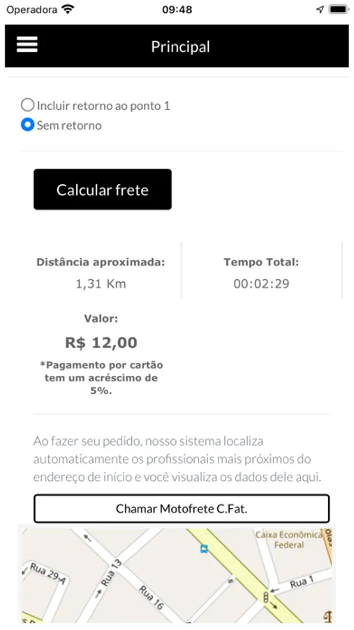 Após preencher os dados da coleta o aplicativo localiza o profissional mais próximo da localização do cliente; gerando uma nova solicitação de serviço.