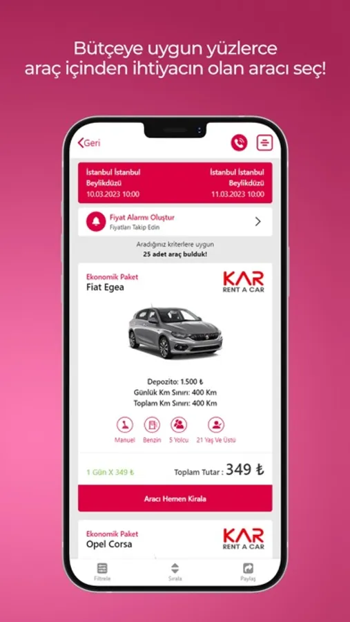 Araç Kiralama hizmetini kendi arabanızı kullanır gibi kolay, hızlı ve uygun hale getirmek istiyoruz.