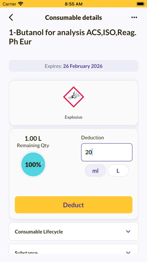 The LANEXO® inventory manger is a software solution specifically designed for highly regulated (GxP-compliant) analytical/QC laboratories involved in pharma, biopharma, industrial testing and CRO/CDMO. The mobile application in combination with radiofrequency identification (RFID) labels will let you capture and manage lab inventory data with ease, efficiency and convenience, without sacrificing safety or quality. Efficient Inventory Management - Detailed, real-time data greatly enhances experimental planning and operational efficiency - Scientists spend less time on manual inventory processes and more time on science - Increase sustainability by streamlining the use of consumables (FIFO: First In, First Out principle) resulting in less waste, and lower disposal costs Compliant and Audit Ready - Secure data storage, time- stamped audit trails, user authentication and traceable records to ensure that your lab is always audit-ready and compliant with FDA 21 CFR Part 11 and EU GMP Annex 11 - User compliance by allowing permissions based on user roles and approval processes Greater Safety with Lower Operational Risk - LANEXO® incorporates automated features like electronic SDS, storage compliance monitoring and expiry date monitoring to enhance and simplify your lab’s safety compliance. - Storage rules allow the user to set up a default storage matrix or customized storage matrix according to the lab’s requirements, enabling alerts to any storage incompatibility or other non-compliance reasons Intuitive and Easy to Implement - Mobile and web apps are simple to set up and integrate into existing workstreams - Intuitive and straightforward interface that lab personnel can adapt easily - Integrate LANEXO® with your existing ecosystem like LIMS, ELN, ERP and others to prevent data silos in your lab