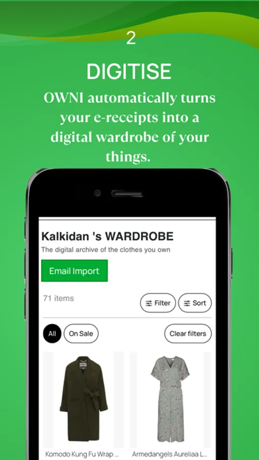 With OWNI's AI-powered digital wardrobe, you can turn all of your e-receipts into a library of your things. Shoppers browse OWNI's library of digitised items and make offers on the clothes they want. When they request an item you own we'll notify you and whenever you are ready to sell you can accept an offer, ship, and get paid! OWNI takes care of all the nitty-gritty work, from creating your listings, to connecting you with eager buyers, to handling payments and generating free shipping labels for you. You are able to turn your clothes into cash without listing, returns, or refunds. When you join our vibrant community of fashion lovers, you're not just streamlining the reselling process—you're actively reducing textile waste and championing circular fashion.