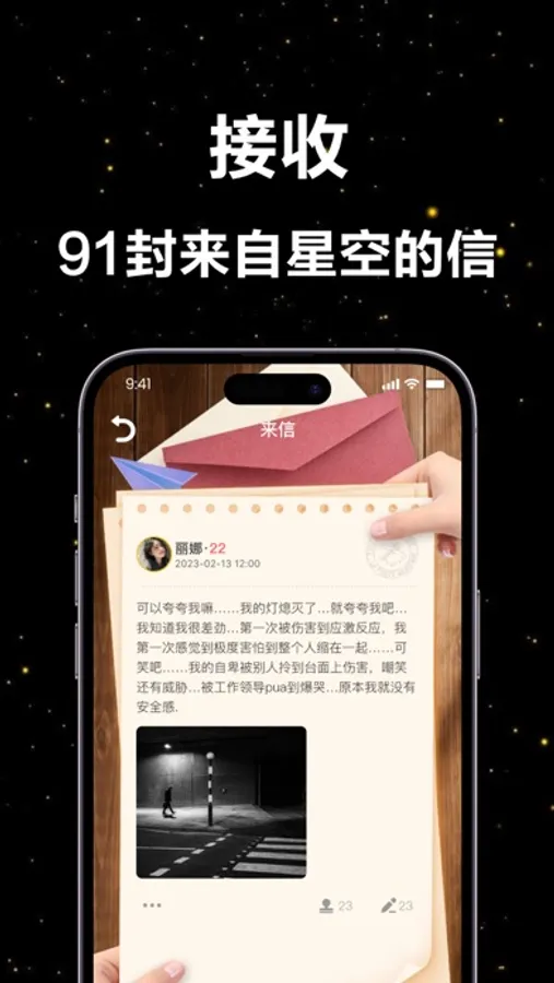 每日收取91封来自星空的来信,希望你用心去抚慰每一个漂流的人~