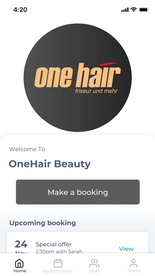 The OneHair Beauty app makes booking your appointments and managing your loyalty points even easier. You're just a few taps away from feeling good and looking great!