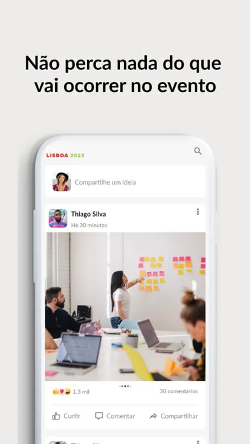 Poderá fazer novos contactos, enviar perguntas aos oradores, trocar mensagens com outros participantes, enfim, interagir com a comunidade. Além disso, poderá consultar a agenda, avaliar conteúdos, dar feedback e responder quizzes. Utilize a APP e aproveite ao máximo os recursos.