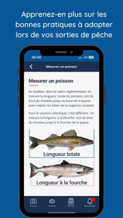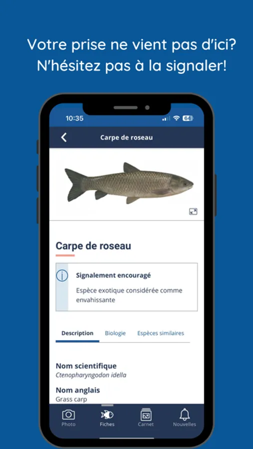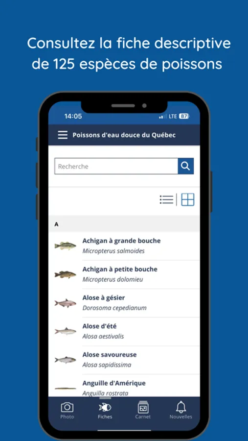 Identifiez vos prises avec iPêche! Cette application conçue par le ministère de l’Environnement, de la Lutte contre les changements climatiques, de la Faune et des Parcs (MELCCFP) facilite l’identification des poissons d’eau douce du Québec, et celle de certaines espèces exotiques susceptibles d’être observées sur le territoire québécois.