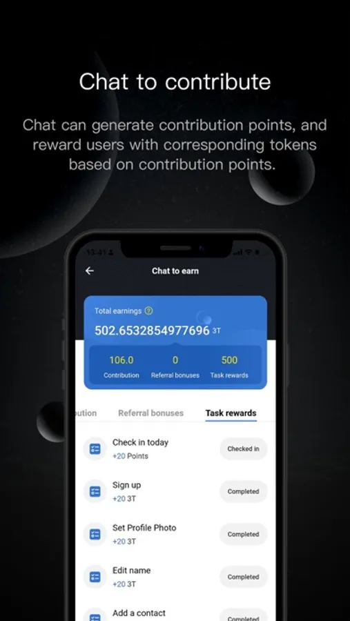 3Tchat is based on the decentralized blockchain protocol, the DID identity system on the native WEB3 chain, and builds a new generation of decentralized, private and secure new social communication software.
