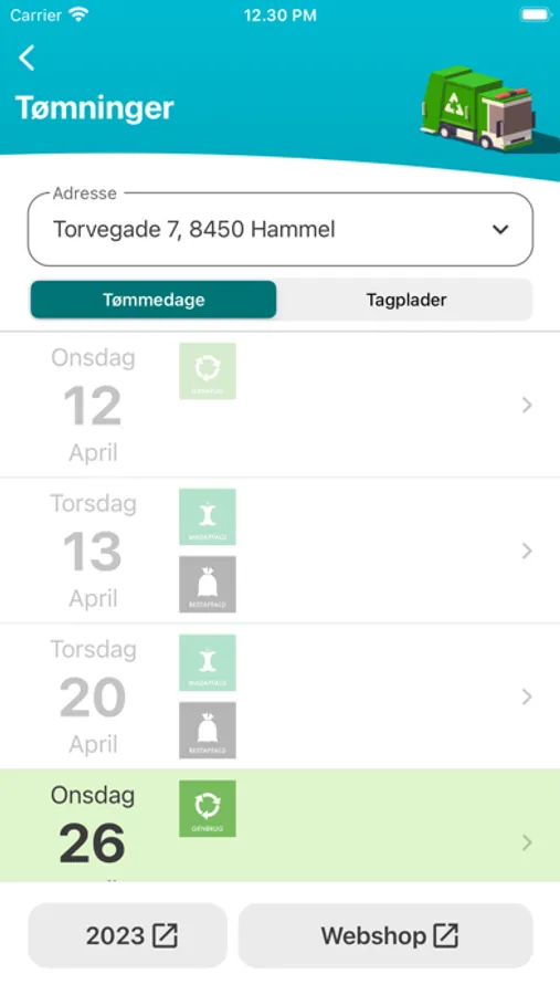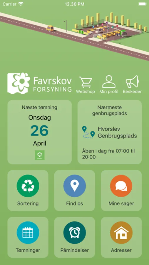 tømt, hvor nærmeste genbrugsplads ligger, hvordan du skal sortere dit affald, og du kan nemt give os