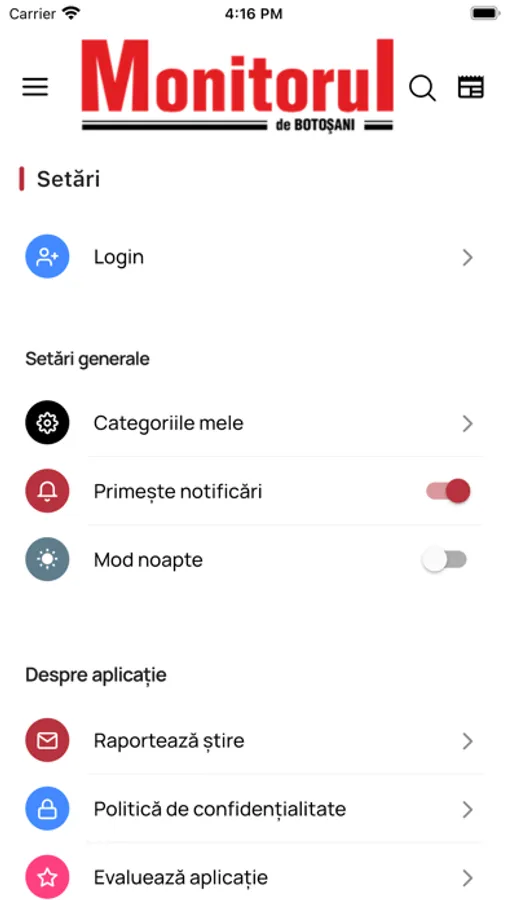 - Aplicaţia poate fi personalizată în funcţie de categoriile de ştiri preferate.