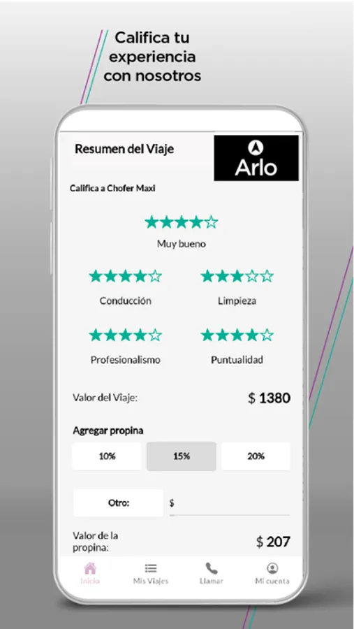. Califica tu viaje y si lo deseas deja propina al chofer.