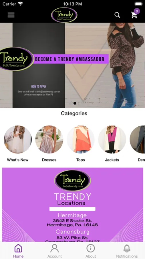 Trendy is a privately owned company that was established to create a location that all women can shop to find the right stylish piece, accessory or handbag to complete her wardrobe. Trendy can serve your on-line apparel and in-person shopping too at our two brick and mortar locations.