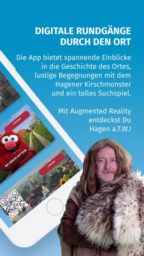 Die App "Entdecke Hagen a.T.W." bietet Dir spannende Einblicke in die Geschichte des Ortes, lustige Begegnungen mit dem Hagener Kirschmonster und ein tolles Suchspiel.