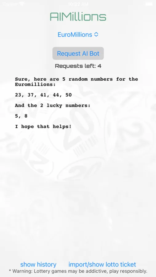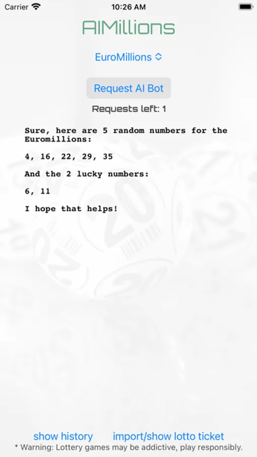 AIMillions is an app that uses the AI Turbo engine to generate lotto numbers.