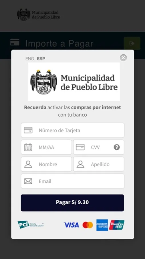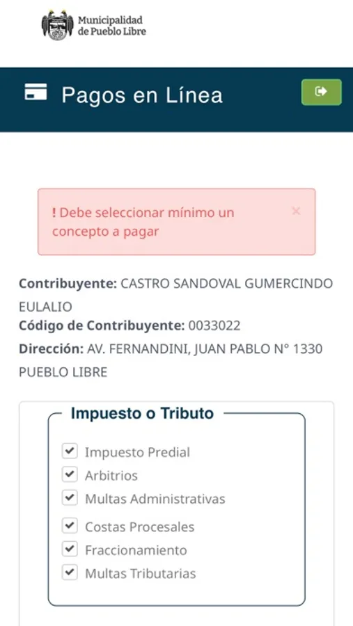 Aplicación para realizar pagos de impuestos y tributos del distrito de Pueblo Libre.
